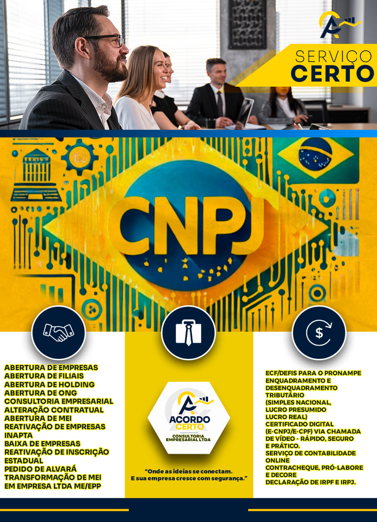 Na Acordo Certo Consultoria Empresarial LTDA, cuidamos da parte burocrática enquanto você foca no que realmente importa: o sucesso do seu negócio.